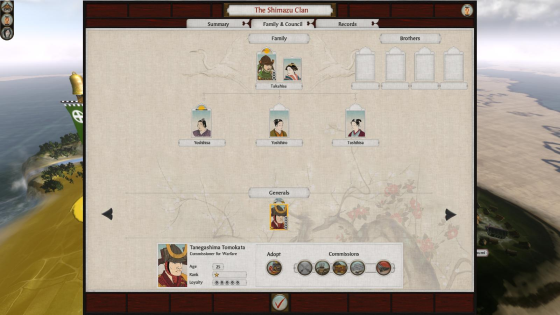 Takahisa has three sons that are still too young to be leaders. The Shimazu has general Tanegashima Tomokata, fiercely loyal to the Shimazu but the years of peace has made him a little rusty. Things are about to change and he will have a huge responsibility of leading the Shimazu on the battlefield.