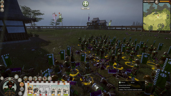 Outnumbered, things looked dire for Tanegashima. During battle, archers were placed on top a cliff, protected by Yari Ashigarus. Tanegashima managed to beat the enemy back. Victory! Unfortunately it was a pyrrhic victory. Both Tanegashima’s forces and the enemy lost lots of men. They are still equal but things have gone bad to worse for Tanegashima.